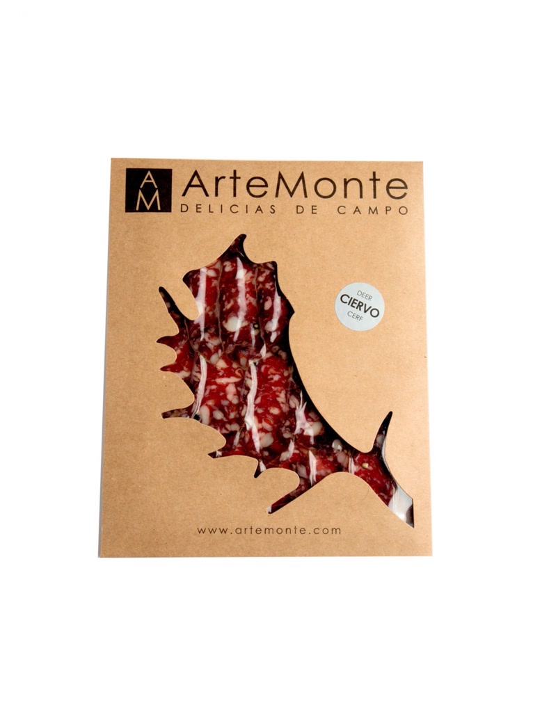 Salchichón de ciervo elaborado de forma artesanal con refinadas especias naturales, siguiendo las recetas tradicionales de sierra morena. Un embutido gourmet con sello de calidad artemonte.